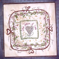 This lovely book is filled with small primitive stitchery patterns which evoke thoughts of friendship, love of family, tea time, garden themes and Noah's Ark.