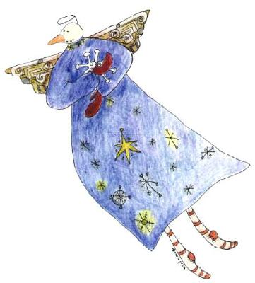 the bestest idea was on that mary emmerlings country at home for the holidays 1998. at the seven gate farms in a corner of a room they had what looked to be a dressing area. displayed there were:, a halo of stars, a pair of wings and a pair of child's shoes and white gown laid about as if an angel had come and removed them to take a well deserved rest.