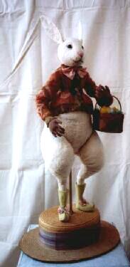 14 years ago gordon's current business sprouted. a friend admired a prototype bunny paul had used as a model for a baby gift. the friend's encouragement convinced him to make more of these bunnies-and make bunnies he did- for about 3 to 4 years! soon the business shifted from children's toys to collectible santa figures. and that was just the start...santas branched into an expansive variety of creations. today among gordon's wares you might find seasonal creations as well as celestial ones, traditional folk art characters to whimsical with a bit of traditional imagery- even goofy garden figures.